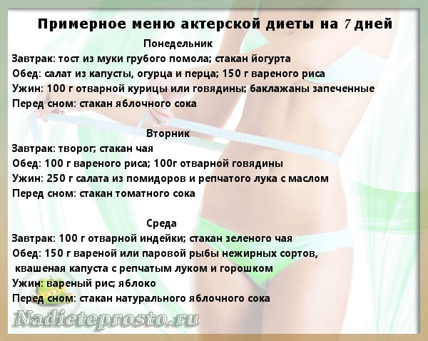 Меню актерской диеты на семь дней