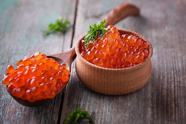 - икринки кижуча с терпким горьковатым послевкусием, на любителя;