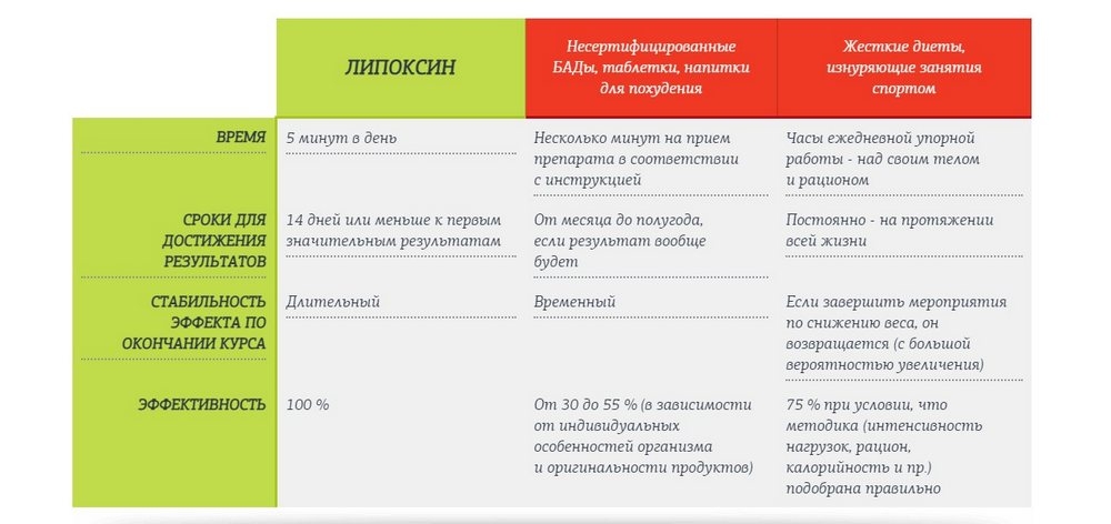 Эльвира Анатольевна, терапевт, врач общей практикиВ первую очередь испытала действие этого БАДа на себе, после отзывов коллег и знакомства с независимыми источниками. Потому что проблемы с весом были и у меня, а у врача не очень много времени для походов в фитнес-центры (хотя и совмещала приём Липоксина с пробежками по утрам). После двух курсов приёма результат налицо – сбросила 9 кг! Наталья Иванина, диетологКапсулы Липоксина совместимы с любой диетой, в том числе и такой экзотичной, как диета по Дюкалю. Единственное ограничение при употреблении – не принимать его одновременно с гормональными препаратами и с аналогичными по результатам средствами, имеющими, впрочем, в своей основе другие принципы «обмана» пищеварения. Например, обилие клетчатки и её разбухание в желудке после приёма. Так как тогда пропадает весь эффект Липоксина, желудок остаётся растянутым и не сократится в период применения средства.