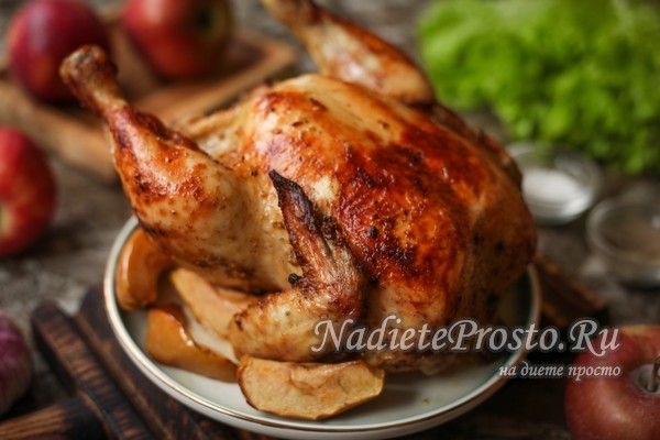 Курица с яблоками в духовке целиком – самый вкусный рецепт и фото