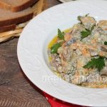 Куриные сердечки с луком и морковью в сметане