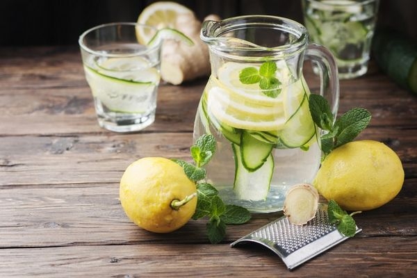 Как приготовить:В графин залейте чистую водичку, накройте крышкой. С имбиря уберите верхний слой. Корень натрите на терке, сок соберите и переложите в графин.С огурца снимите шкурку. Измельчите овощ кружками, а затем порежьте их еще на 2 части. Положите огурец в воду с имбирем.Мяту промойте под струей воды, промокните полотенцем. Руками нарвите листики произвольным способом, погрузите в воду. Размешайте содержимое графина и уберите настаиваться в холодильник на 8-10 часов.